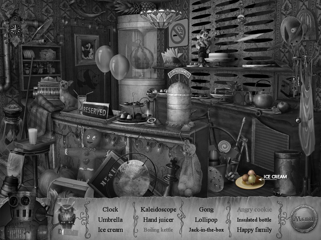 Hidden Object Areas: These very by player, therefor only inventory items will be highlighted. Hidden objects in red required you to do something with in the scene. I will tell you how to solve these in the guide (not the screenshot).