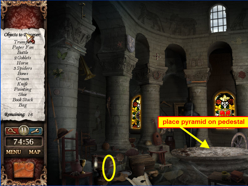 - Locate the items in the next scene...then enter the pyramid.