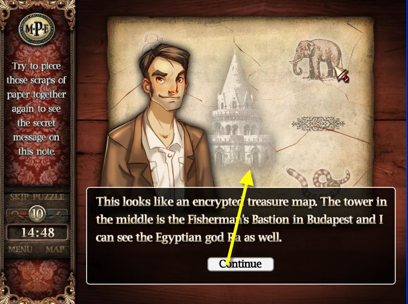 - Put scrap pieces of paper together to receive Budapest hint.