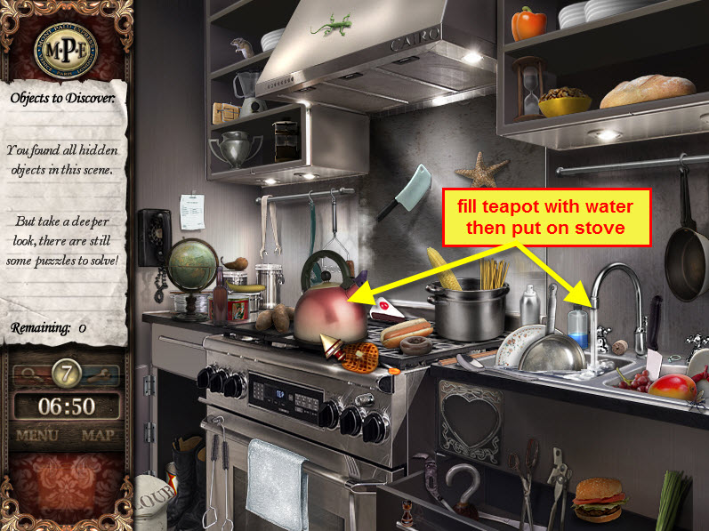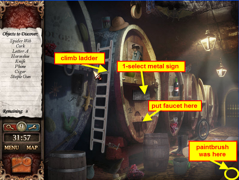 - Locate the hidden objects, collect a faucet for inventory and...oh and of course the suspect paintbrushes.