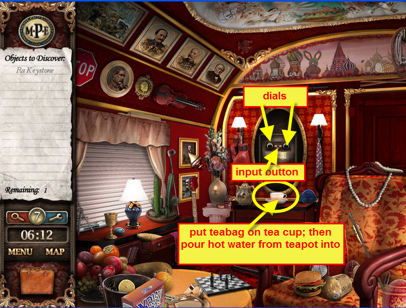- Return to cabin after you have hot water in the teapot to locate Ra Keystone.