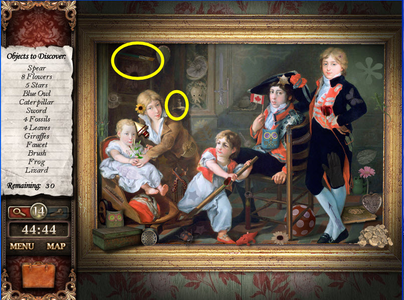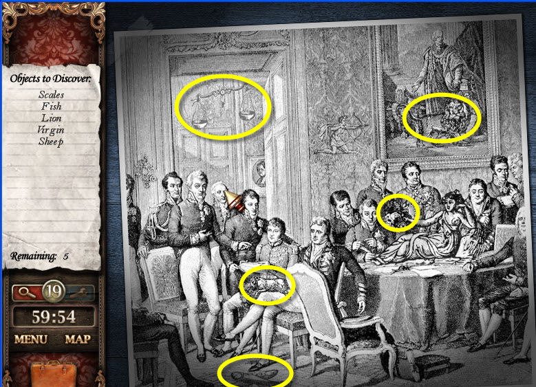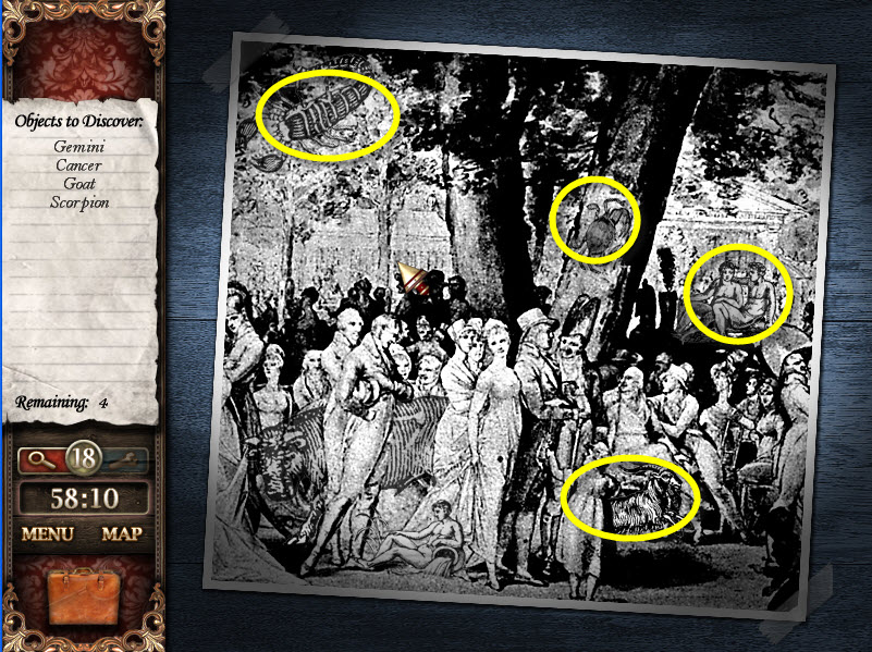 - Locate the hidden objects to get to the next scene.