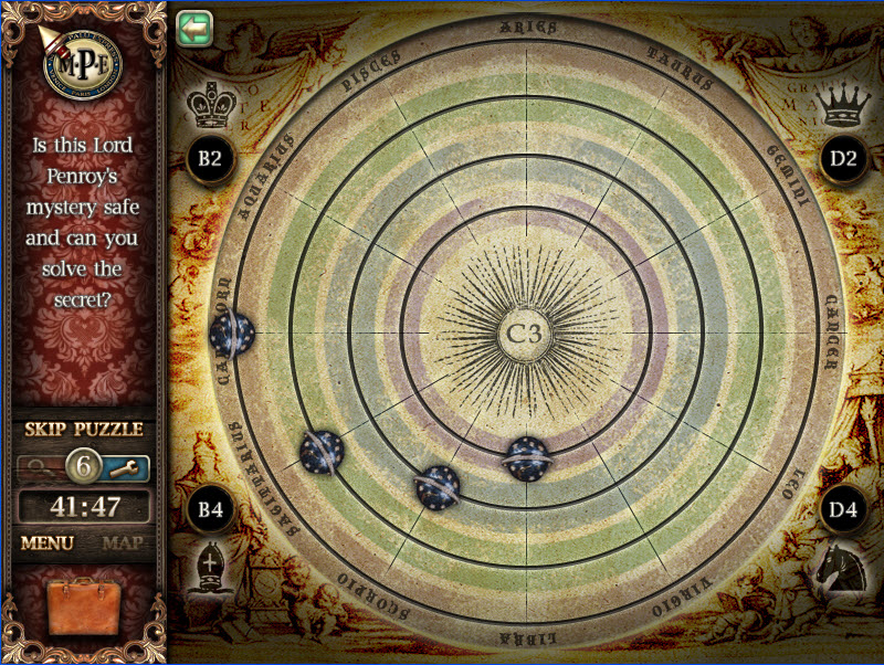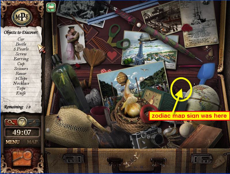 - Select the suitcase to locate hidden items and collect zodiac map sign.