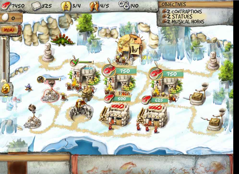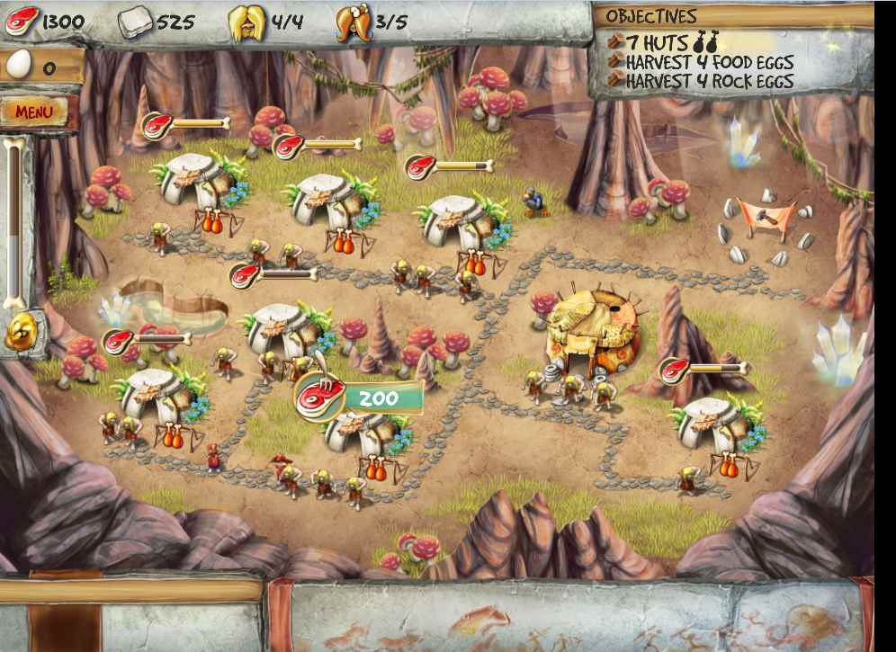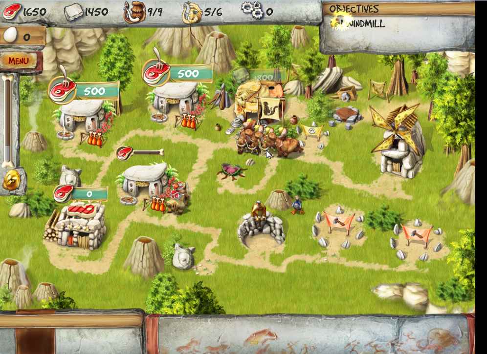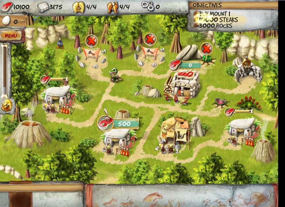 Oftentimes when you play a game such as this, you will find that you just can't finish the level in the time allotted for an expert time. If you try one method several times and it just doesn't work, you need to come up with something different. Start with a different building first. Work in a different direction. Caveman's Prophecy has something different in this game and that is the ability and necessity to purchase different mounts. On some levels just purchasing the animal will be enough to allow you to finish more efficiently because they allow you to work faster and carry more stone. On other levels, you will find that you actually need to have a certain animal to finish your building task.
