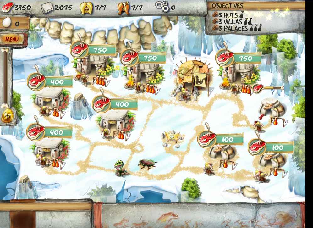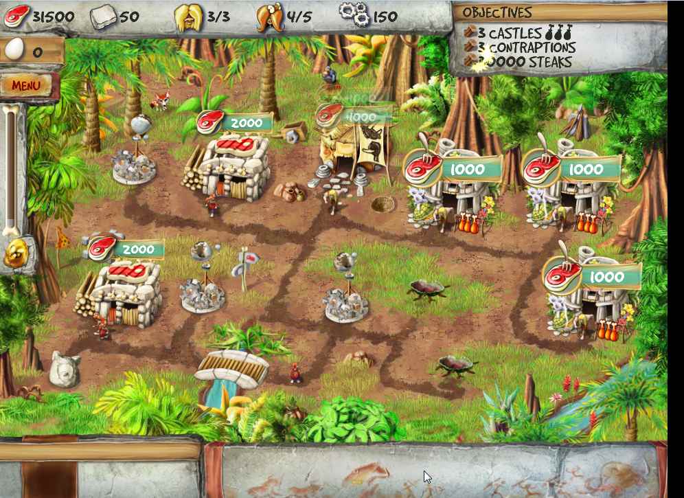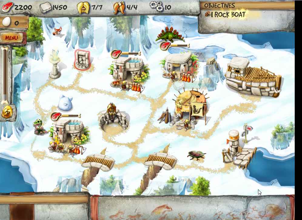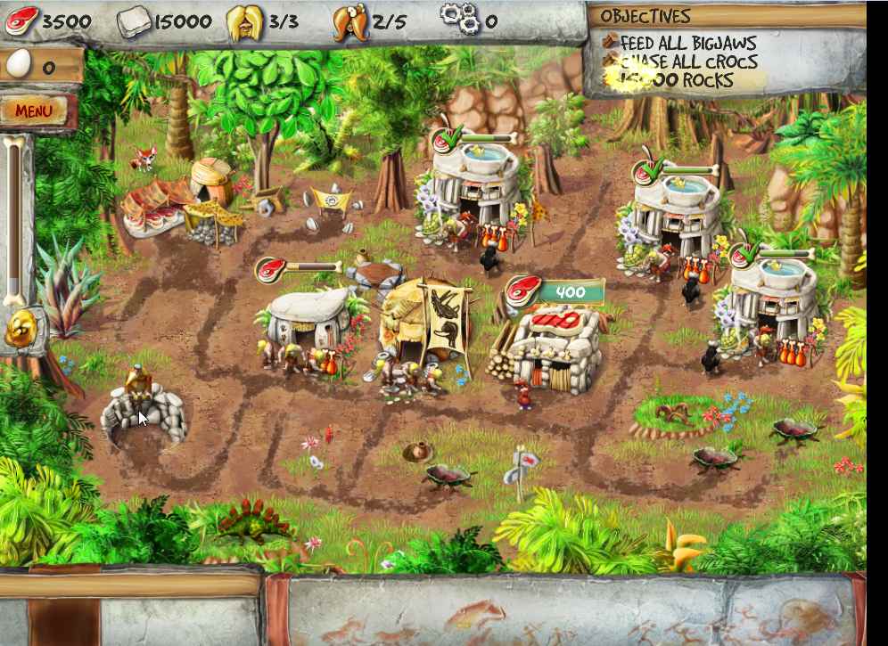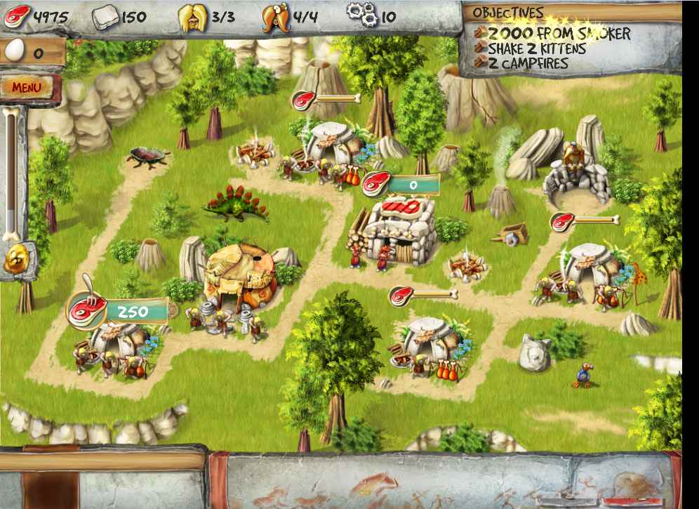 Oftentimes when you play a game such as this, you will find that you just can't finish the level in the time allotted for an expert time. If you try one method several times and it just doesn't work, you need to come up with something different. Start with a different building first. Work in a different direction. Caveman's Prophecy has something different in this game and that is the ability and necessity to purchase different mounts. On some levels just purchasing the animal will be enough to allow you to finish more efficiently because they allow you to work faster and carry more stone. On other levels, you will find that you actually need to have a certain animal to finish your building task.