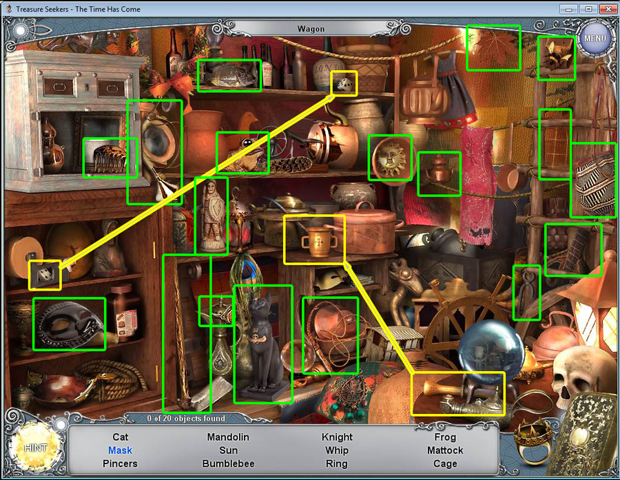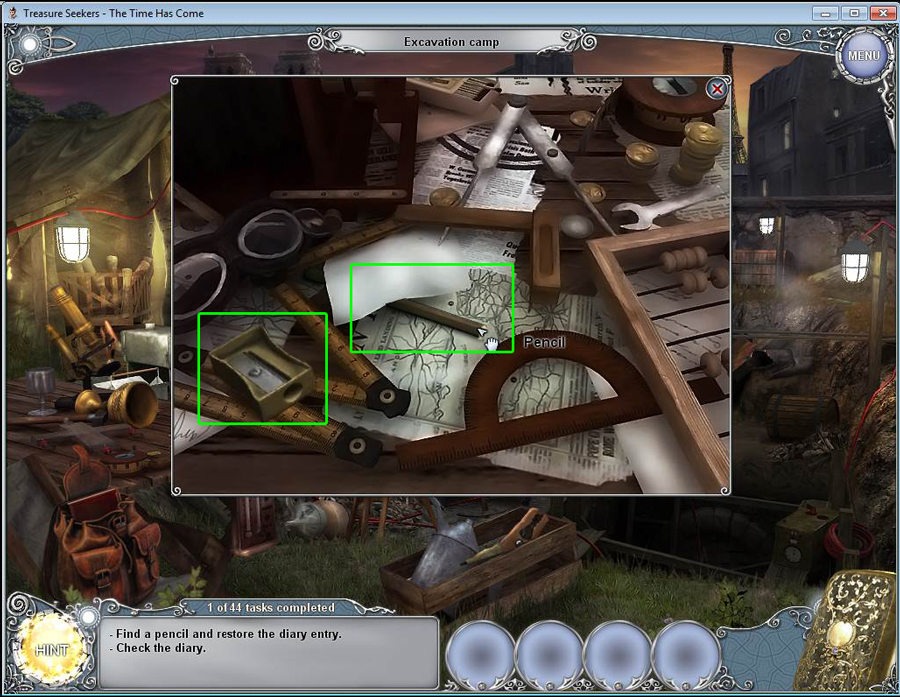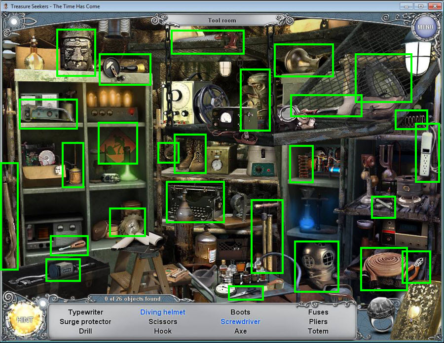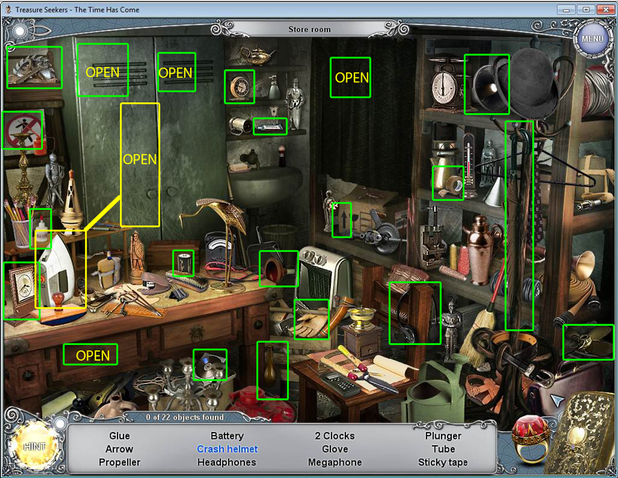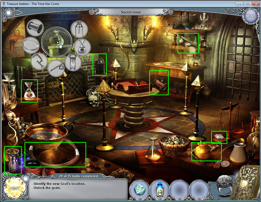 - Find all the items in the hidden object area.