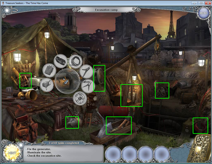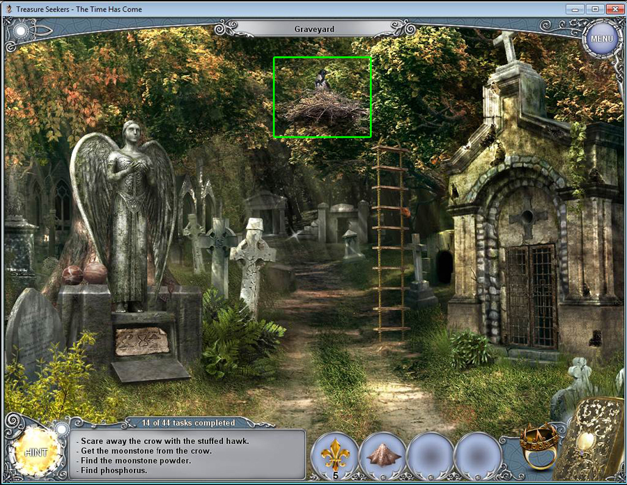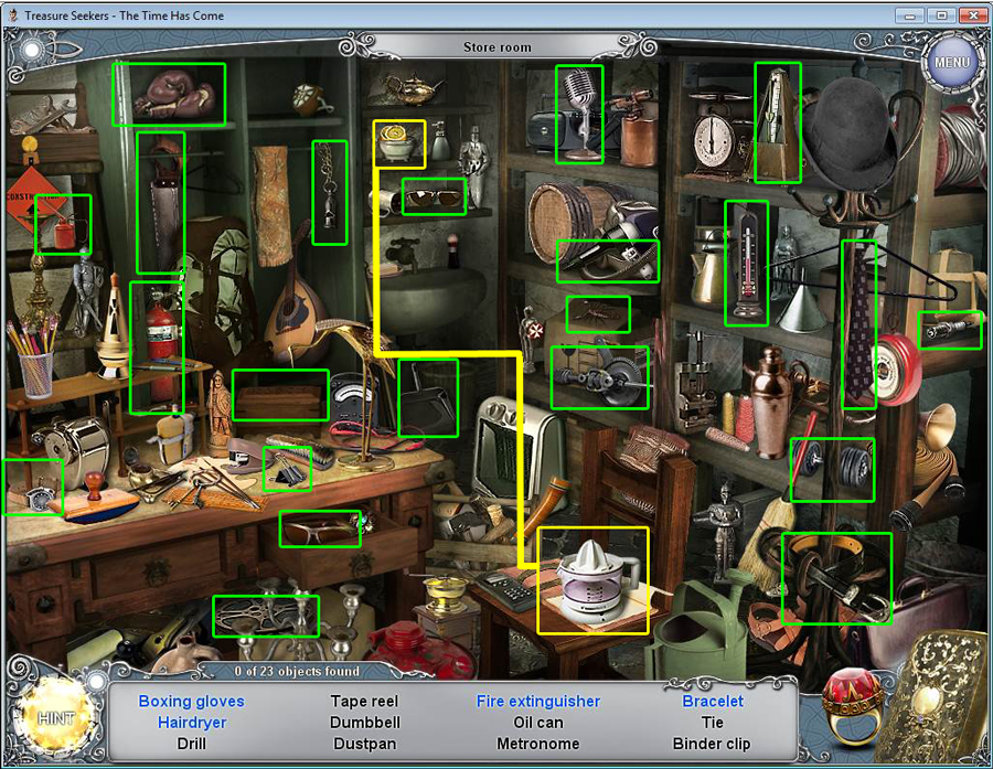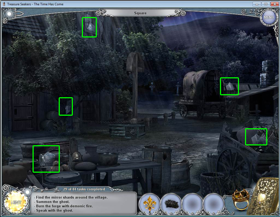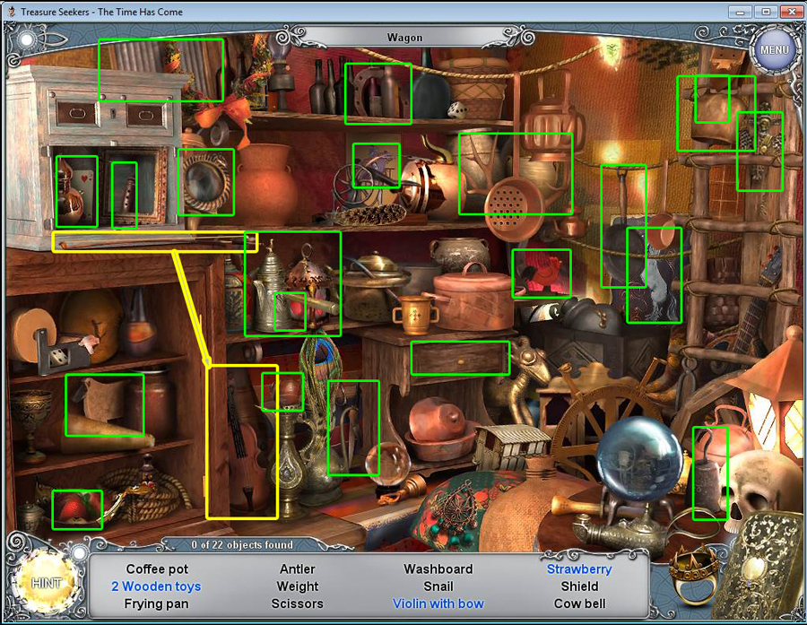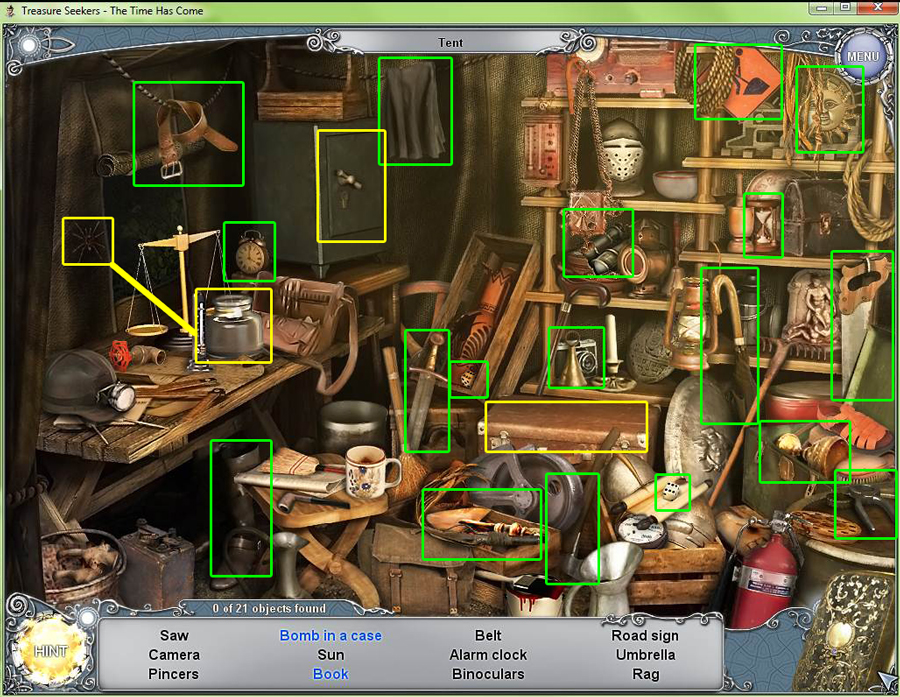 - Find all the items in the hidden object area.