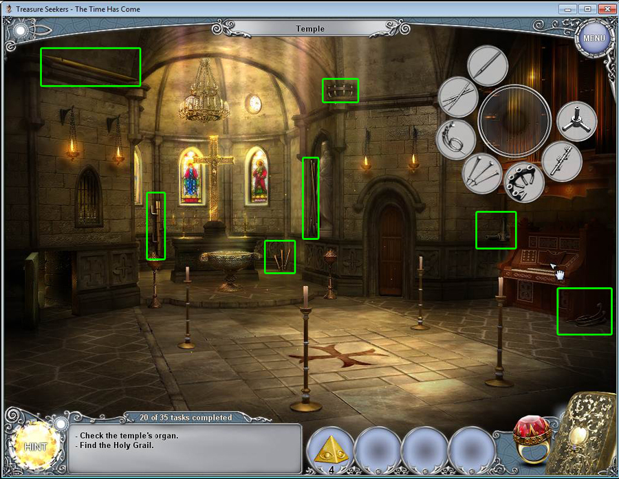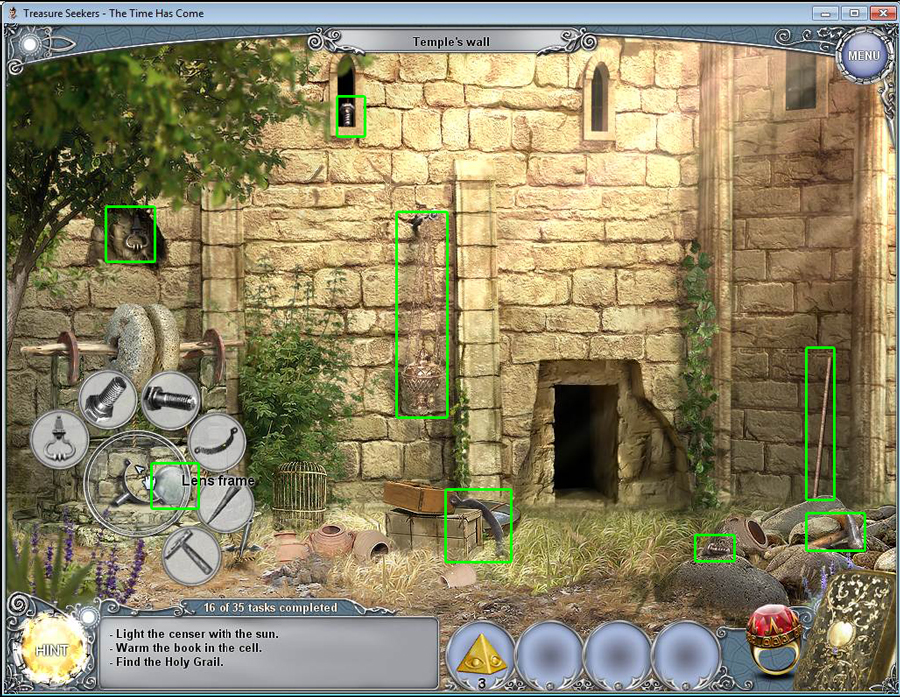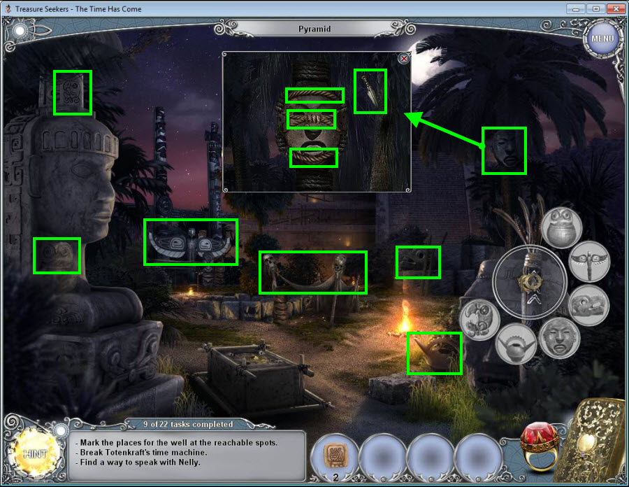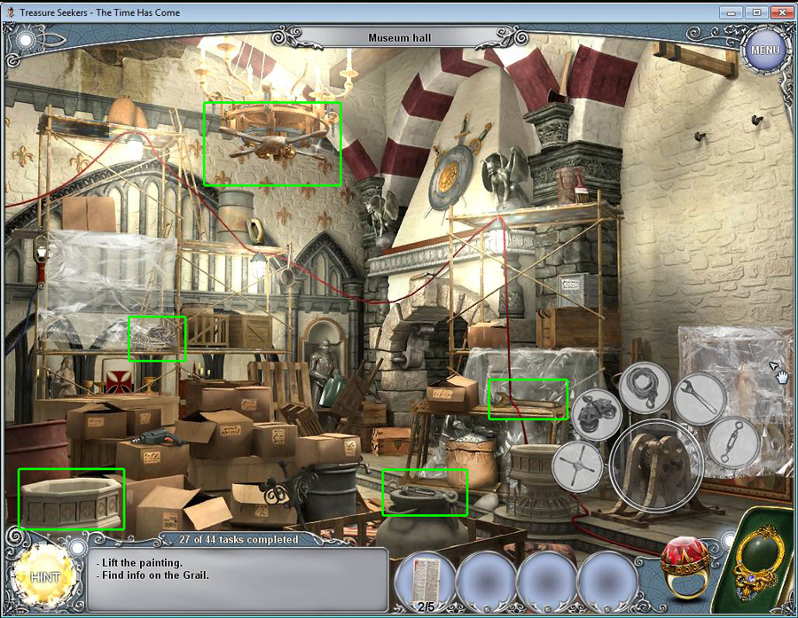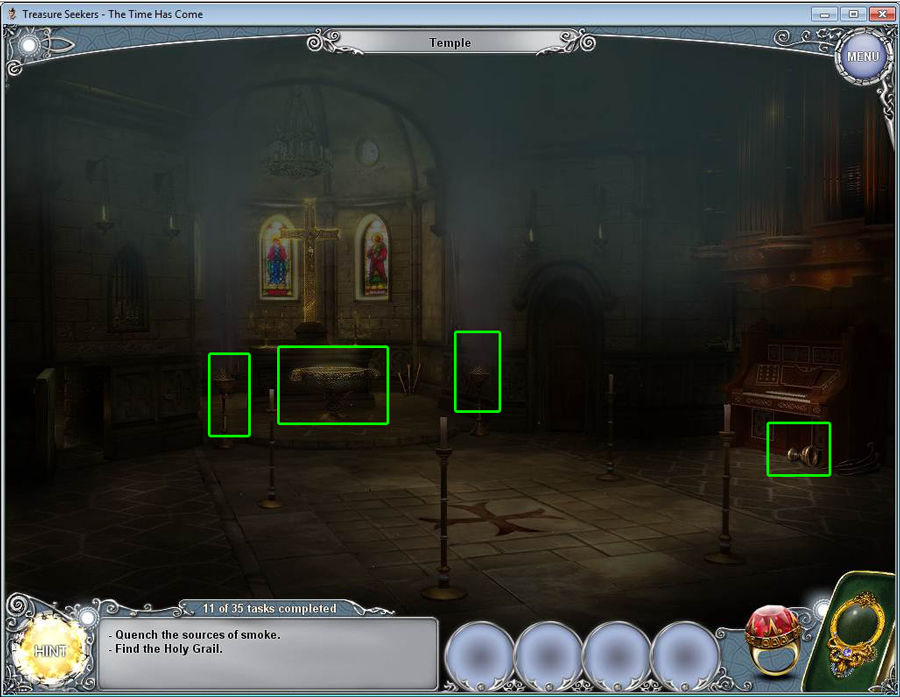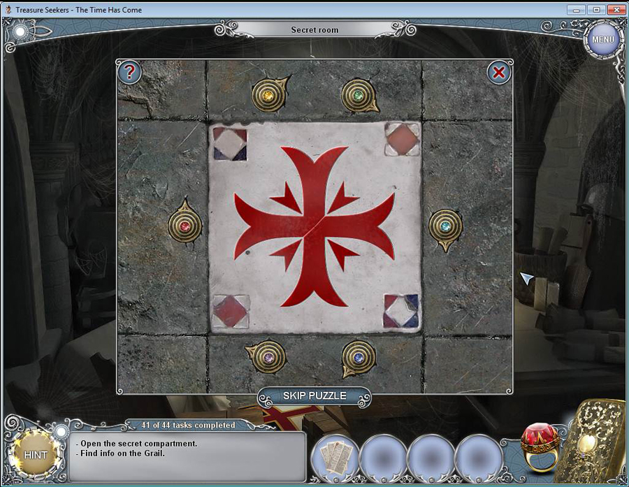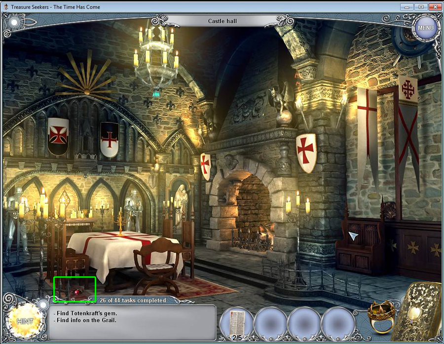Treasure Seekers: The Time Has Come Walkthrough has step-by-step instructions on how to beat the game from start to finish. It includes detailed screenshots of all locations and hidden object areas as well as videos of how to solve certain puzzles. Treasure Seekers: The Time Has Come is a Hidden Object Adventure game chock full of exciting puzzles and challenging hidden object areas. Can you help Tommy save his sister Nelly, find the Holy Grail, and save the world from almost certain destruction?