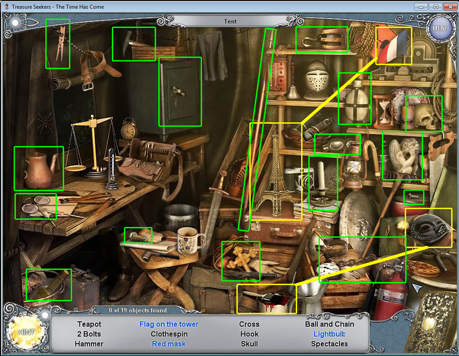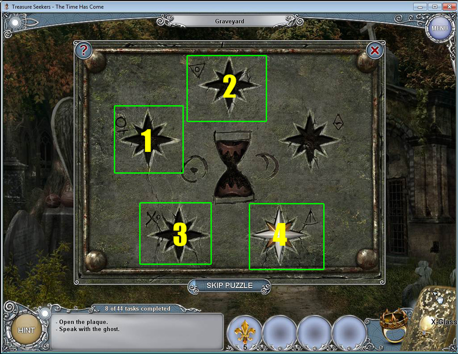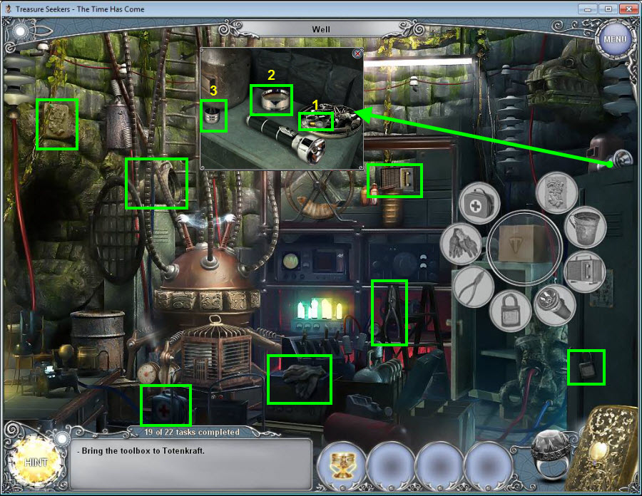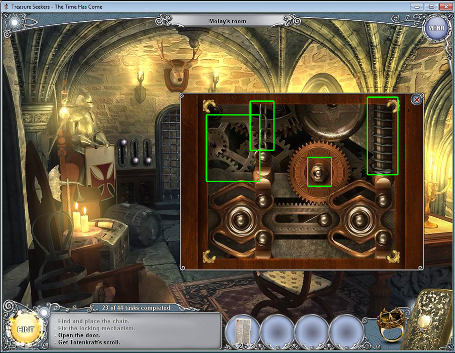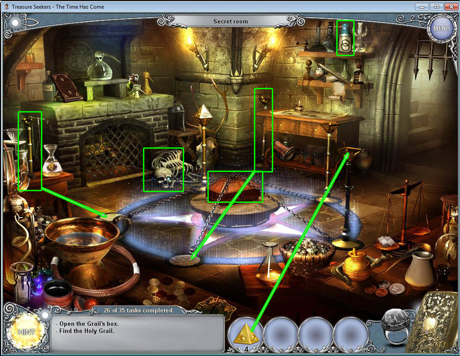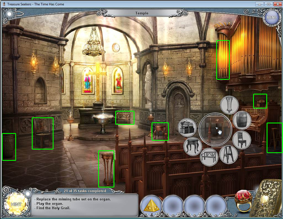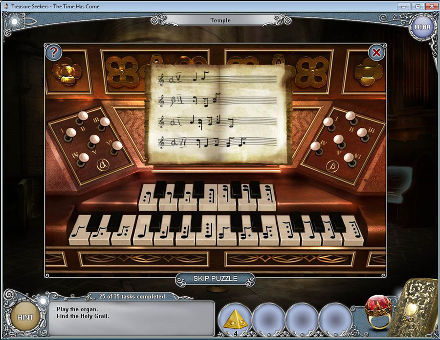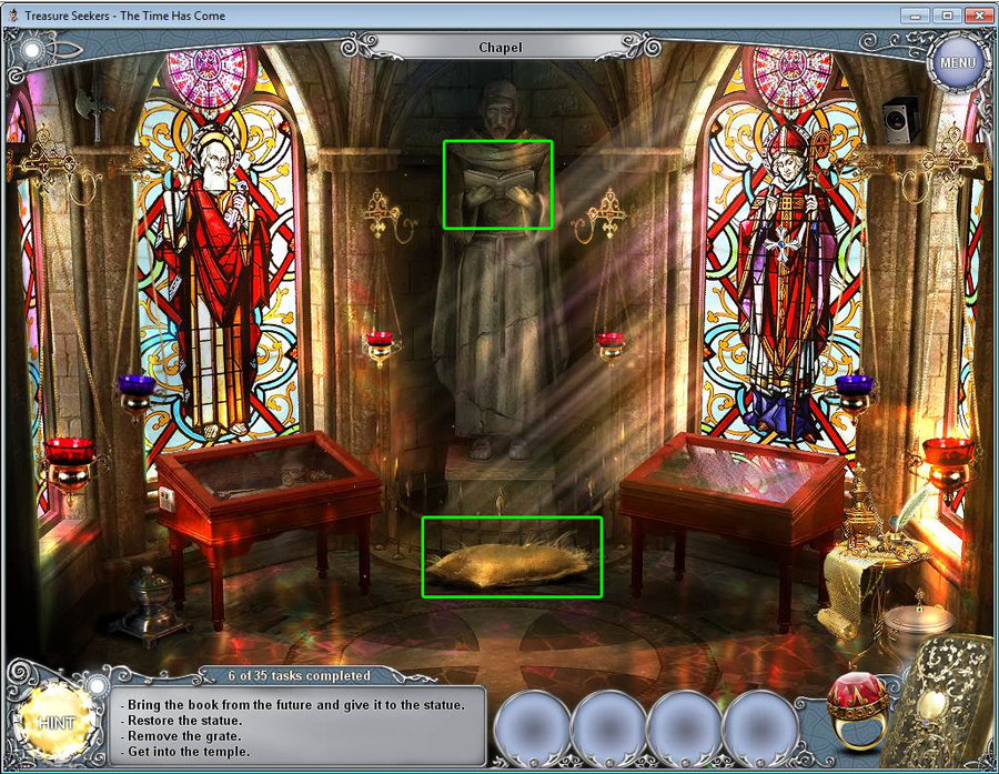 Treasure Seekers: The Time Has Come Walkthrough has step-by-step instructions on how to beat the game from start to finish. It includes detailed screenshots of all locations and hidden object areas as well as videos of how to solve certain puzzles. Treasure Seekers: The Time Has Come is a Hidden Object Adventure game chock full of exciting puzzles and challenging hidden object areas. Can you help Tommy save his sister Nelly, find the Holy Grail, and save the world from almost certain destruction?