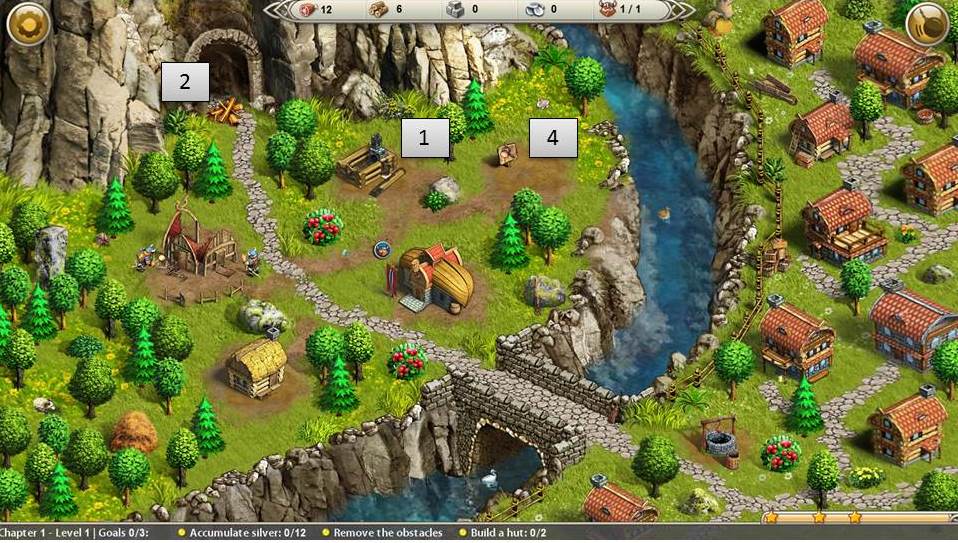 - Build 3rd house and upgrade twice (don't bother keeping road clear for silver)