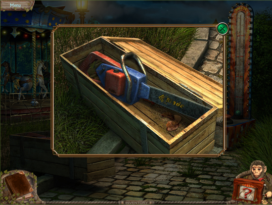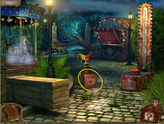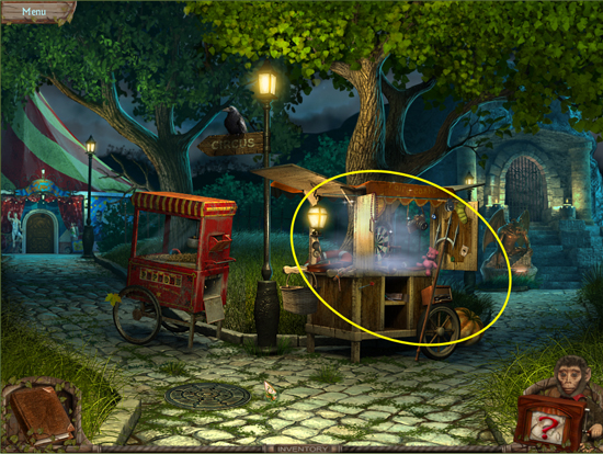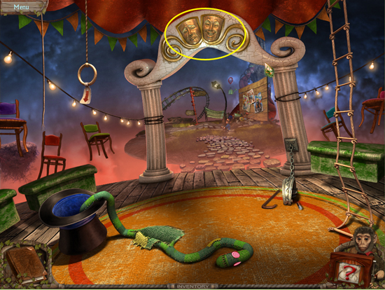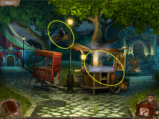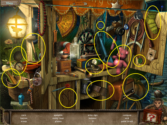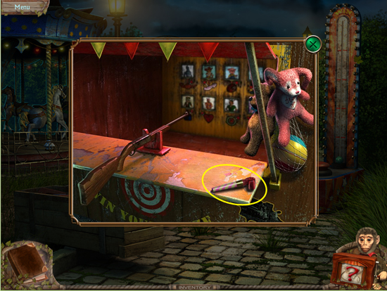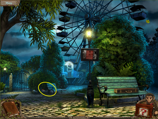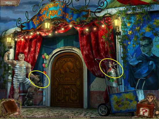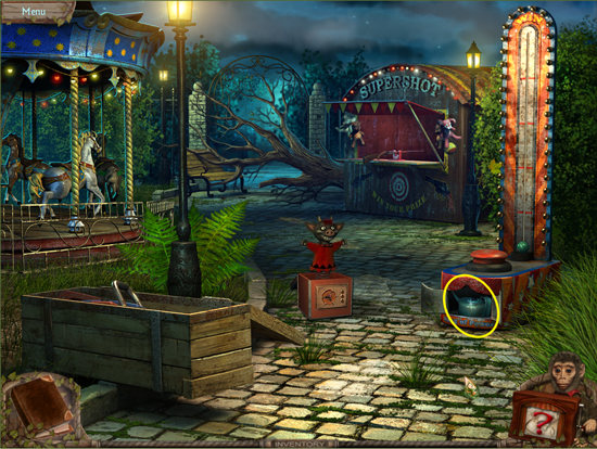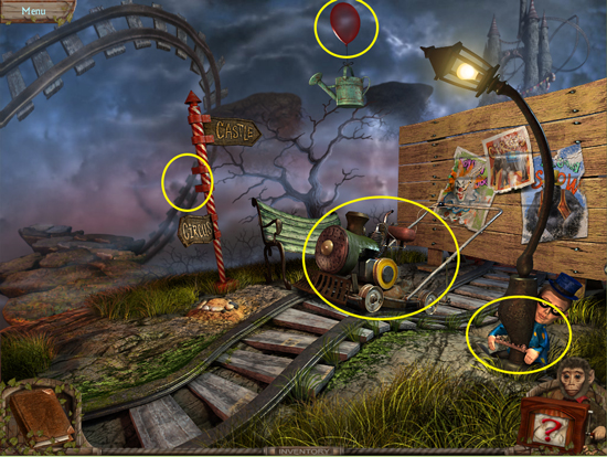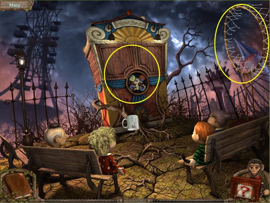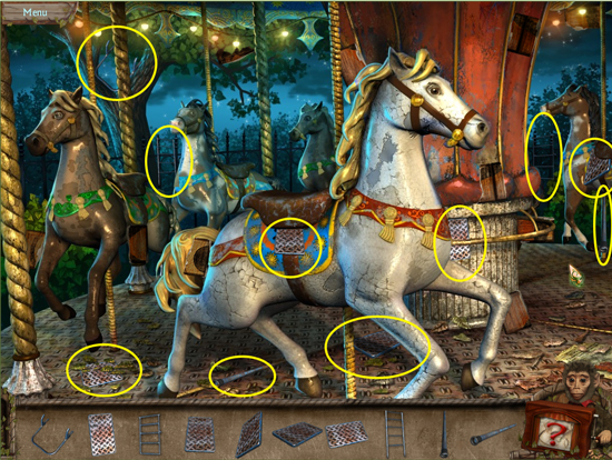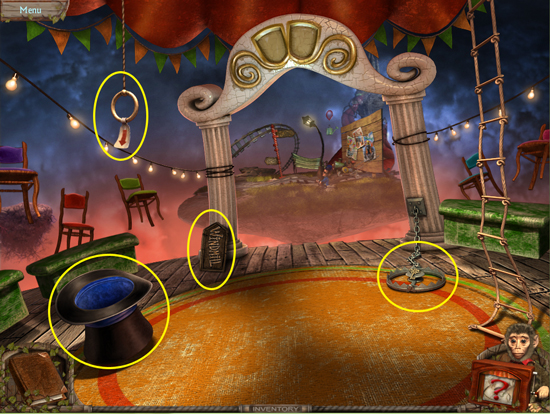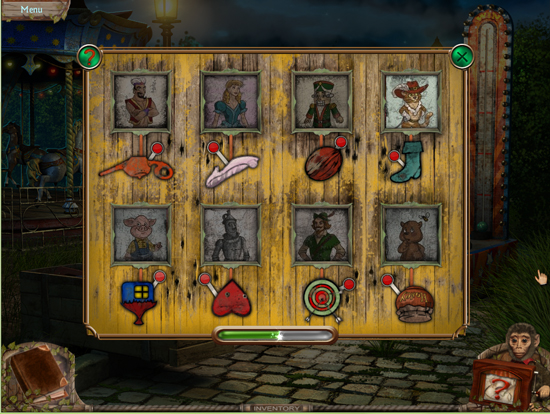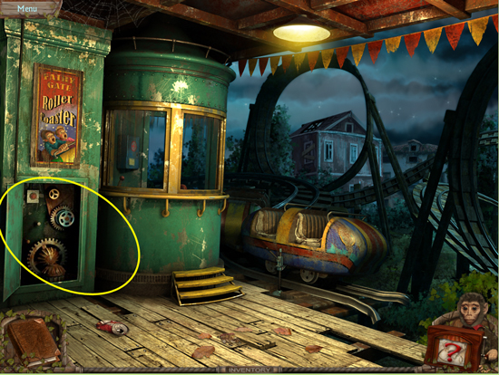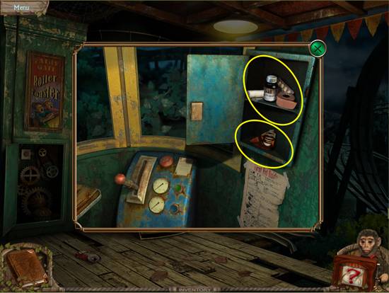 * Go back outside to the ferris wheel car and click on the sparkling lights to play the hidden object area