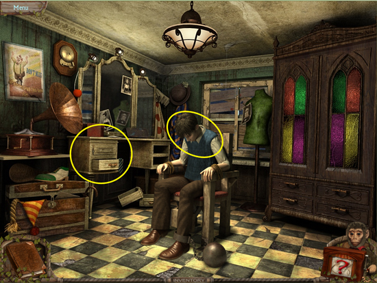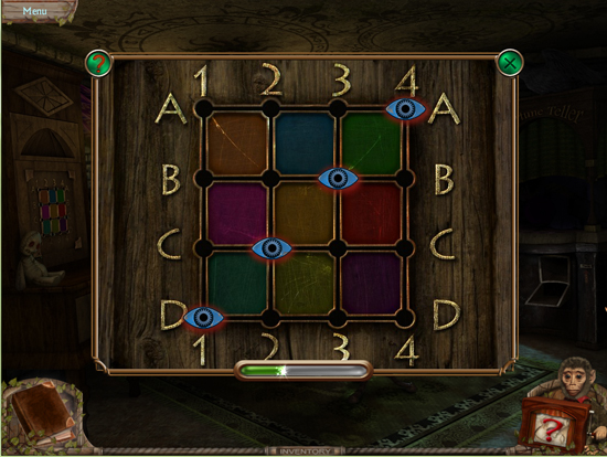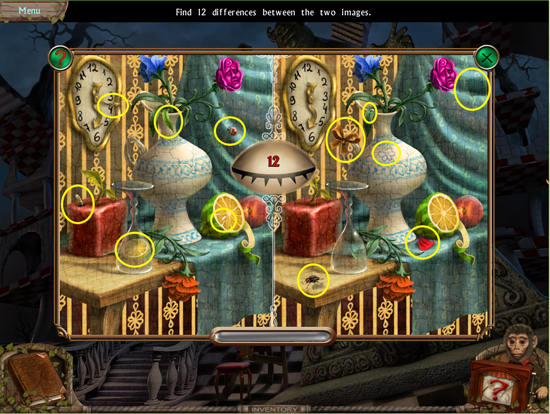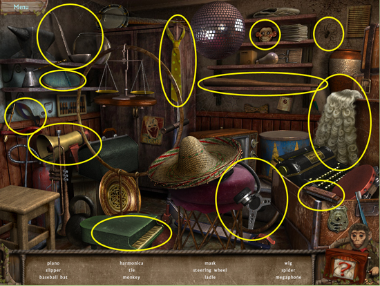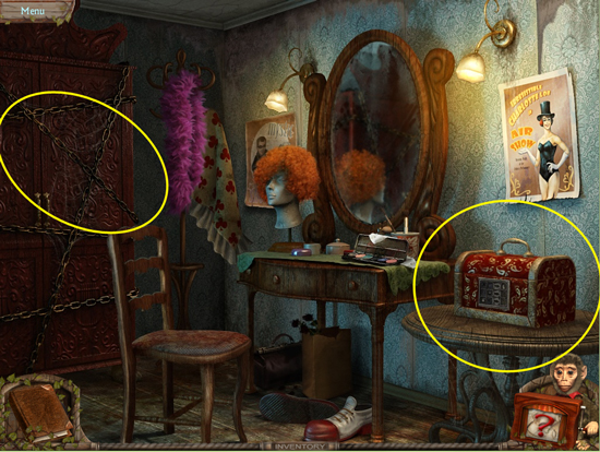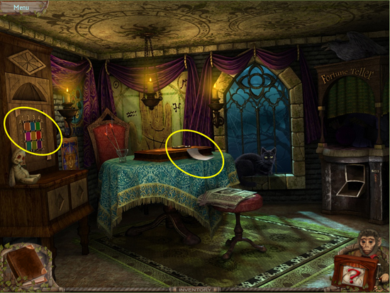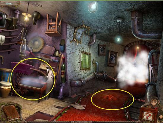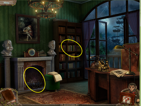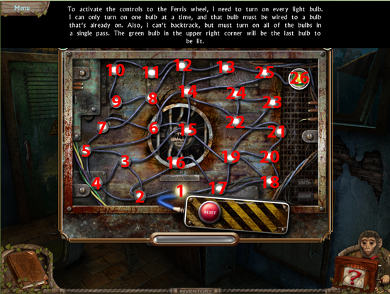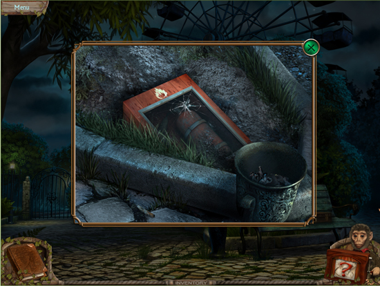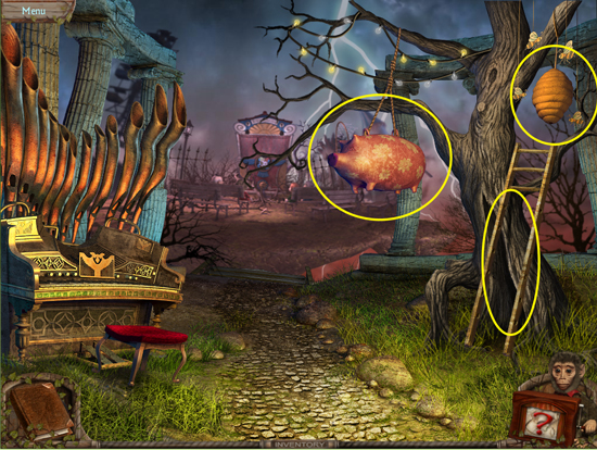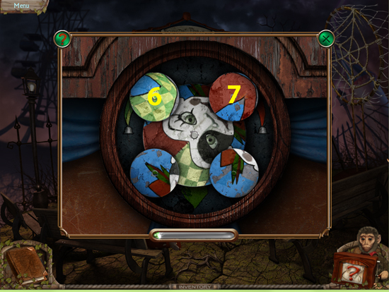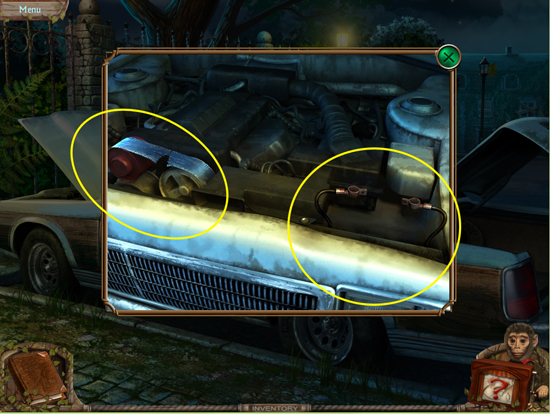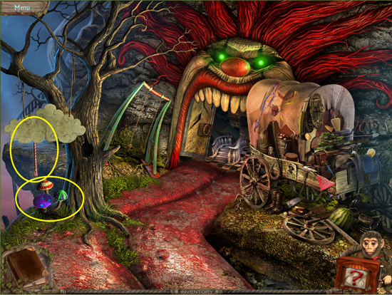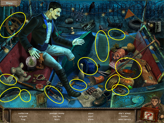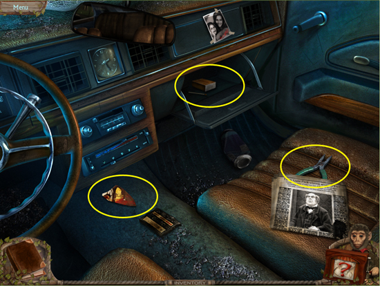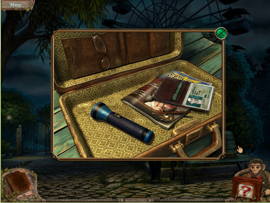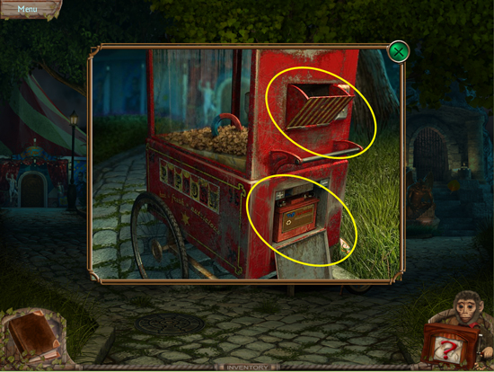 * Go back outside to the ferris wheel car and click on the sparkling lights to play the hidden object area