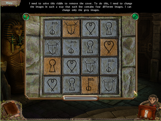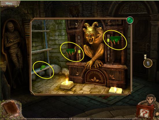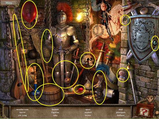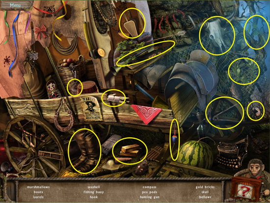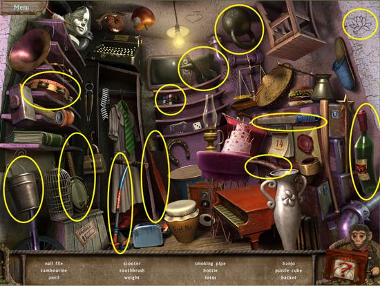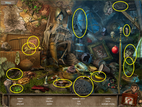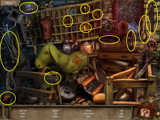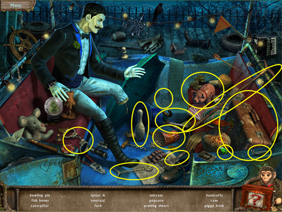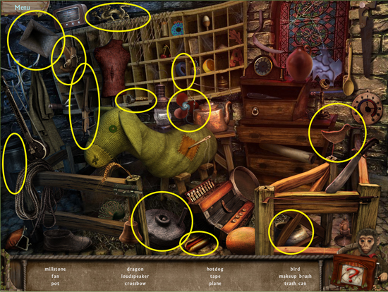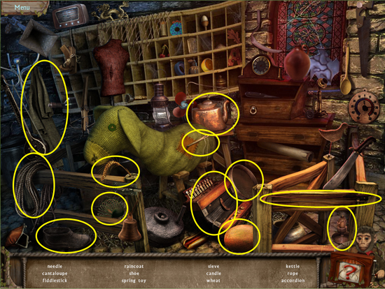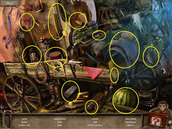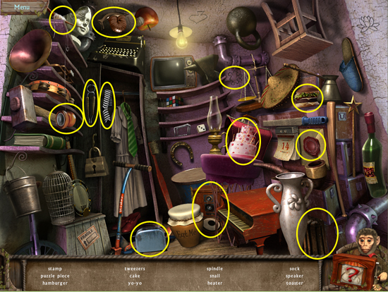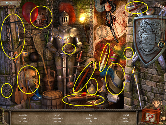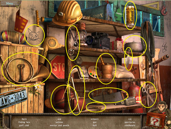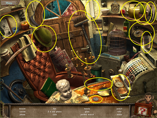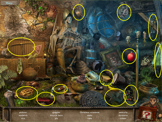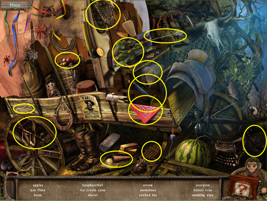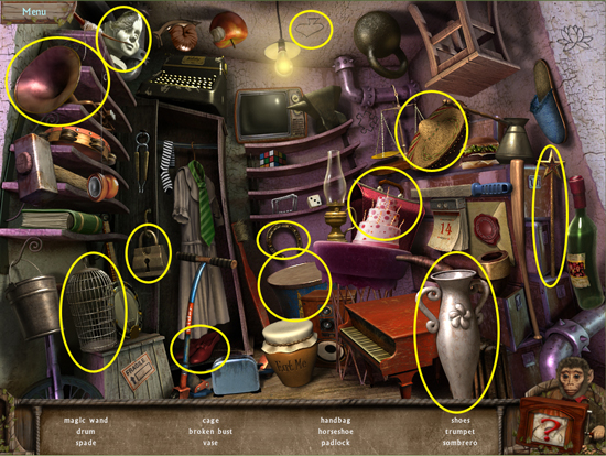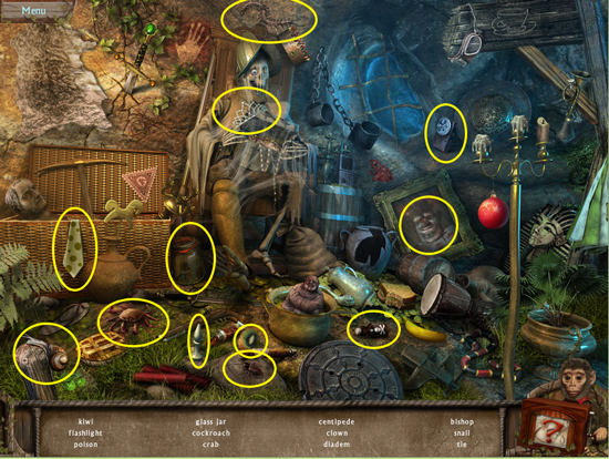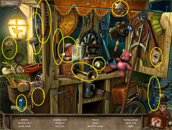 * Click on the sparkling area to start a hidden object scene
