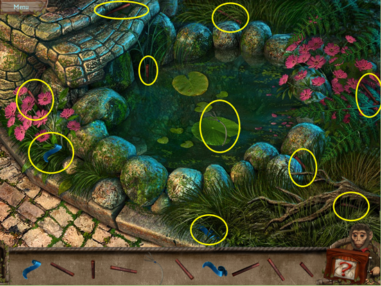 * Go back to the pond and play the hidden object area there