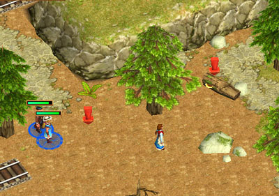 A little to the east of the coal mine, is a gold mine. As you head in that direction, the mine caves in with one of the mines trapped inside! Help his brother get him out of there lickety split!