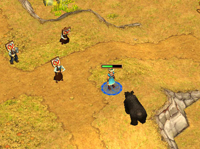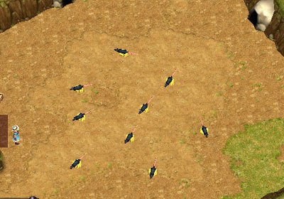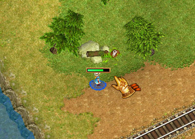 Go back up to the bandit guarding the cheese. Watch carefully... the bandit will walk off to the left. When he does this, go over and snatch the cheese. Who likes cheese I wonder... rats? That's right! Go back to where all of the rats are and drop the cheese. You have now made a friend and can control a rat just like you can control a dog.