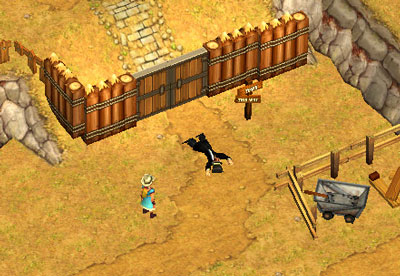 Next, you should see a place with a bunch of rats. Keep going along the right until you a stockade with some TNT, a bandit guarding some cheese, and two bandits guarding some super TNT. You should overhear the two bandits admit that they are afraid of rats.