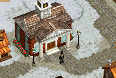 The next board finds Anne in a town with a mayor who refuses to let the railway through! However, the mayor has a secret... he's got half the town for sale because of bad dept apparently... So Anne needs to try to buy up the town as fast as she can.