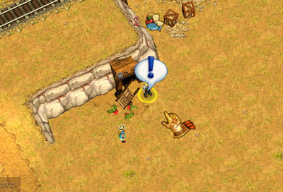 But of course it's not that simple... now you have to actually fix the tracks. Blow up the rocks that are blocking them with the TNT and repair them. Now you need some super TNT... where could that be? Oh yeah, that stockade that was guarded by the two bandits who are afraid of rats.