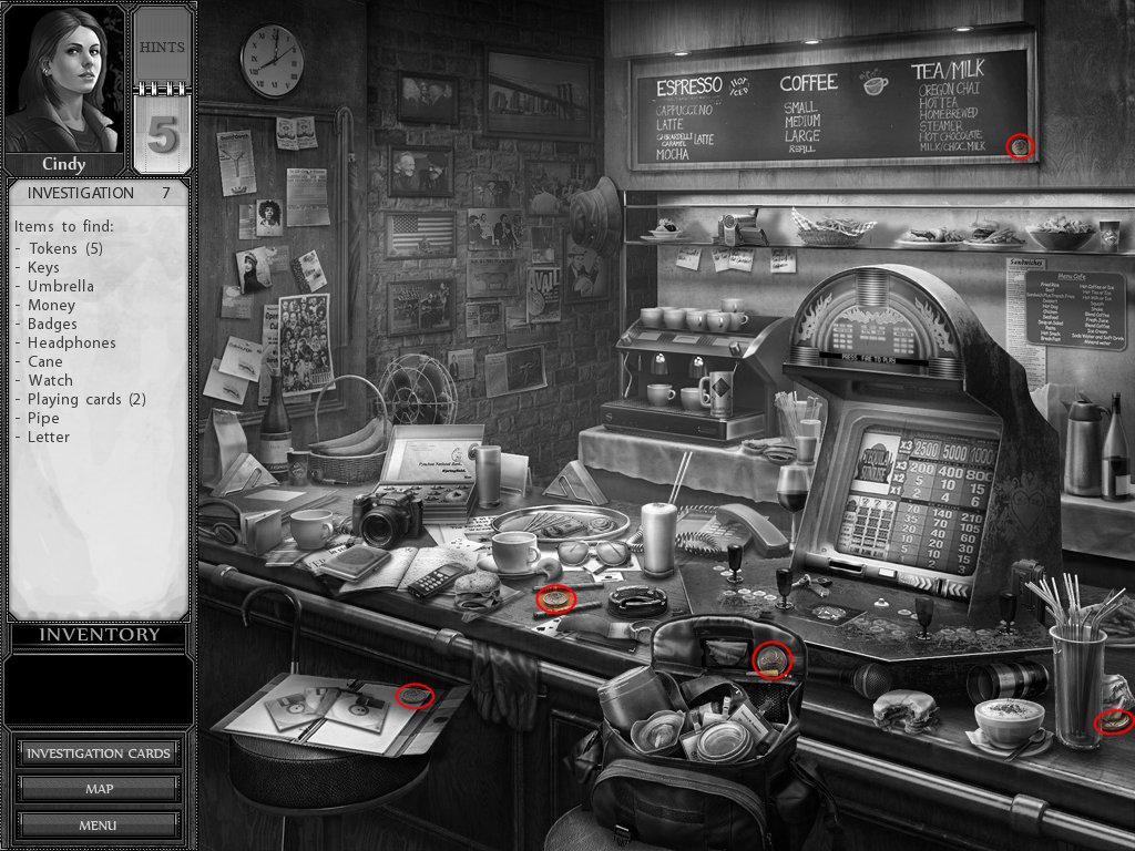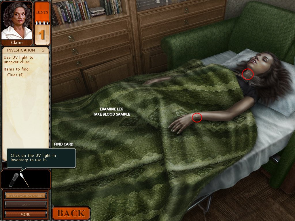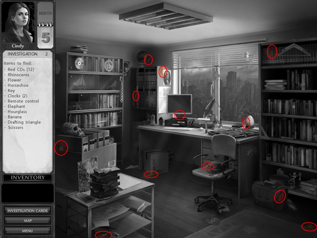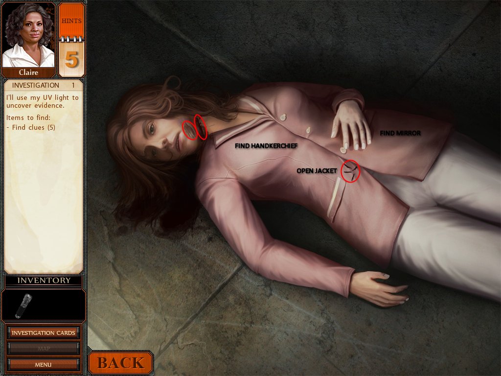 Hints: You get 5 hints at the start of each investigation, use them wisely. If you do not use any of them, you won't get any hints for the next investigation.