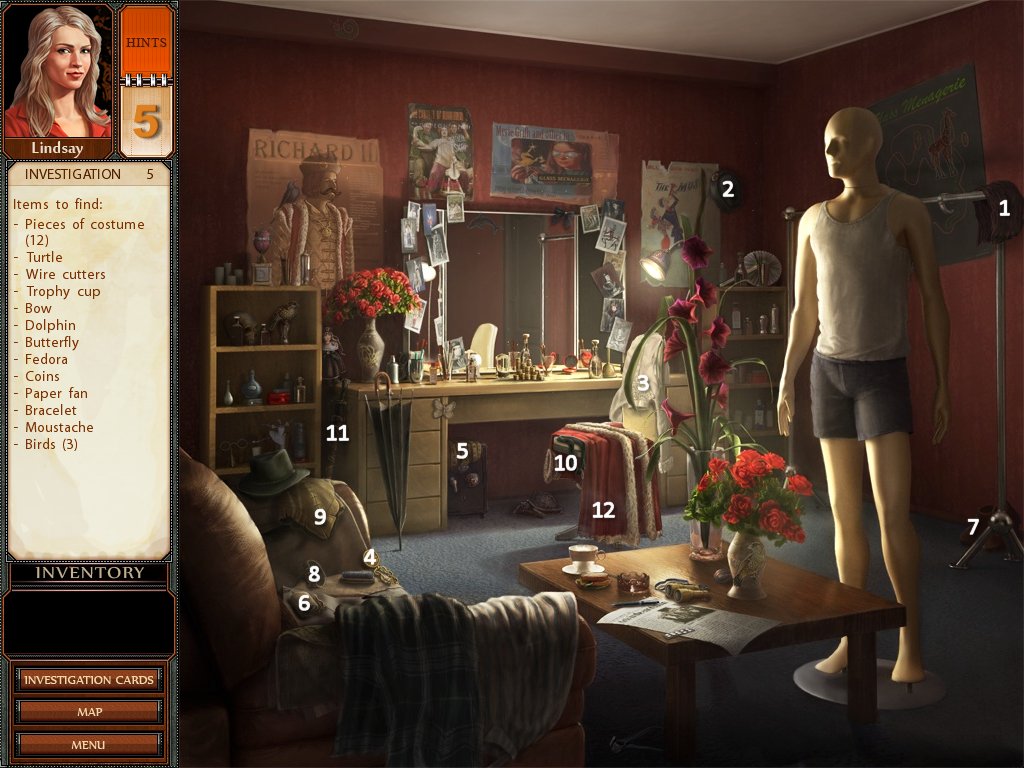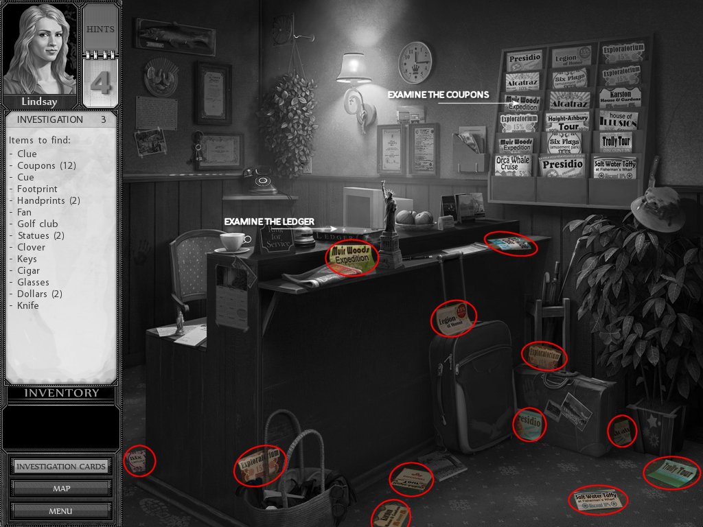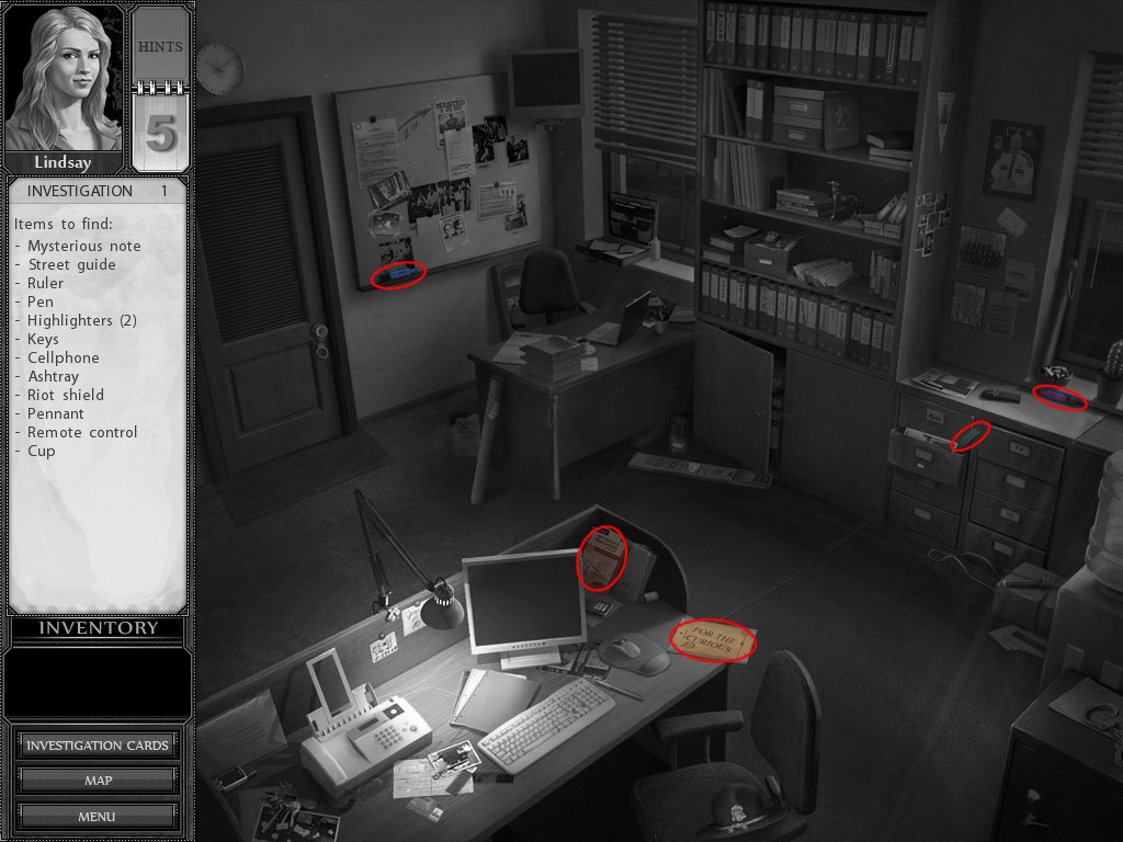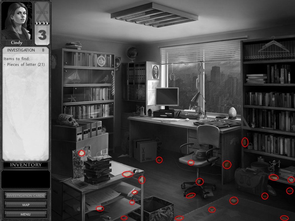 Hints: You get 5 hints at the start of each investigation, use them wisely. If you do not use any of them, you won't get any hints for the next investigation.