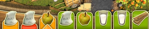 -Goals are indicated on the buttons with the number left and an image of the goal item. The goal items will flash if the items or ingredients are on the truck.