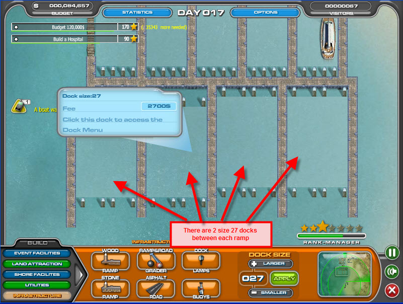 - If there aren't enough docks built for the boats wanting to dock and it close to the next day; you can postpone building docks and dock the boats the next day. If it's early in the day and there aren't enough of requested size docks...it's best to build additional docks of that size.